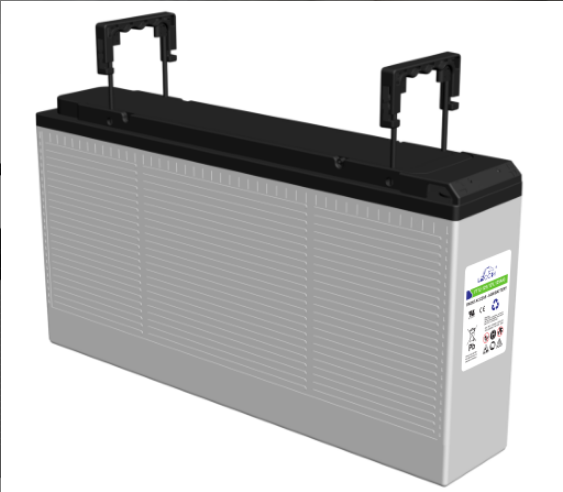 前置端子电池定义蓄电池引出端子置于窄面前端,内部单体排列为2X3结构的狭长型12V铅酸蓄电池。蓄电池正常使用时保持气密和液密状态,使用寿命期间无需补加电解液。